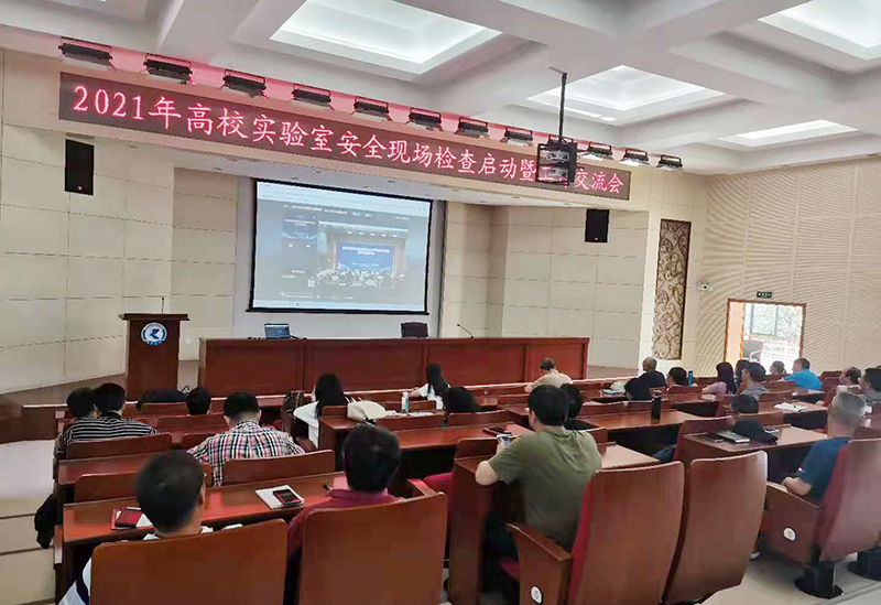 为确保常态化疫情防控下高校实验室运行安全,保障广大师生人身安全和校园稳定,根据省教育厅的有关要求, 5月17日,学校在办公楼D区报告厅设分会场,以视频方式参加教育部科技司召开的2021年高校实验室安全现场检查启动暨工作交流会。学校副校长董建华,资产与实验室管理处、保卫处、后勤集团、科技处等职能处室负责人,各二级学院实验室安全分管领导、实验室管理人员参加会议。