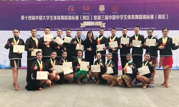 yl23455永利官网参赛选手在本次中国大学生体育舞蹈锦标赛南区赛中独占鳌头,充分展示了yl23455永利官网体育舞蹈专业学生的水平和风采,赢得业内专家和社会观众的赞赏。yl23455永利官网代表队此行再次检验了学校体育舞蹈专业教学水平,达到交流学习、提升自我的目的。