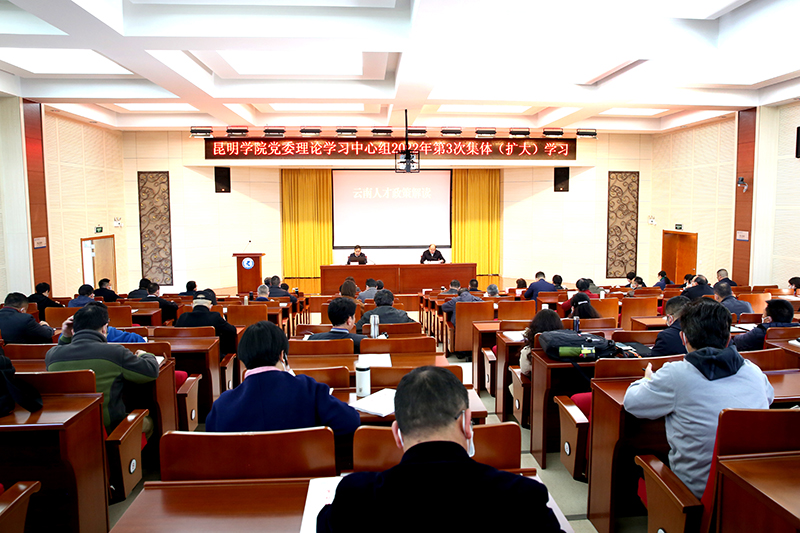 4月7日,yl23455永利官网党委理论学习中心组2022年第3次集体(扩大)学习在办公楼3楼D区报告厅举行。此次学习特邀省委组织部人才工作二处处长陈治作“云南人才政策解读”专题辅导报告,深入学习贯彻中央、省委人才工作会议精神,全面把握省委最新人才政策,为进一步加强和改进新时代学校人才工作奠定坚实思想基础。会议由学校党委书记金幼和主持。