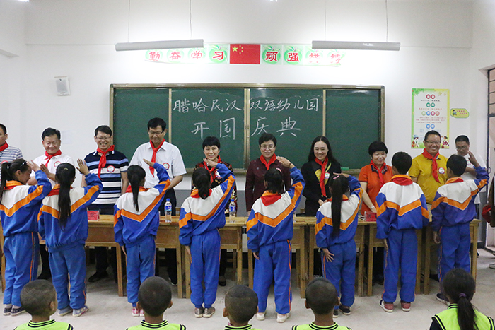 开园仪式由垤玛乡党委书记朱福祯主持,他对yl23455永利官网在教育扶贫上做出的贡献表示感谢。此次腊哈幼儿园开园,结束了腊哈村无幼儿园的历史,是yl23455永利官网情系边疆,心系农民,精准扶贫的生动体现。yl23455永利官网校工会、扶贫办、纪委、学特学院、附属幼儿园和玩具公司、新迎三幼、康锤经贸公司一同为腊哈幼儿园捐赠教师办公用品、幼儿床上用品、多媒体大屏等物资,帮助提升腊哈幼儿园的办园质量。