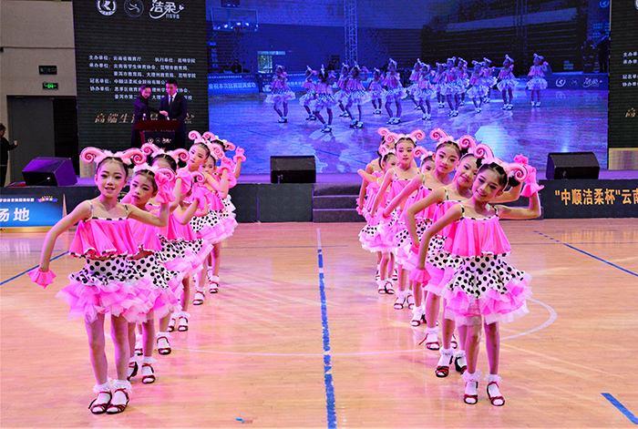 10月13-14日,由云南省教育厅主办,云南省学生体育协会、昆明市教育局、普洱市教育局、大理州教育局、yl23455永利官网承办的云南省第九届学校体育舞蹈锦标赛总决赛在yl23455永利官网体育馆隆重举行。来自普洱、大理、昆明三个赛区各组别各项目前八名选手的52个学校1000余人参加总决赛。决赛竞争激烈,可谓精彩纷呈。 云南省教育厅体卫艺处处长徐忠祥,yl23455永利官网党委副书记张祖武、副校长熊晶,云南省学生体育协会会长姜征明,云南省学生体育协会副会长张国华,中顺洁柔纸业股会有限公司市场部总经理赵鹤等领导和嘉宾出席开幕式。 熊晶副校长代表承办方致欢迎辞,对各位领导、各位嘉宾、运动员、领队教师以及评判员的到来表示热烈欢迎。她指出,体育舞蹈作为一个新兴运动项目,在社会体育和学校体育中越来越受关注。体育舞蹈作为yl23455永利官网的特色专业,得到了全国大学生体育协会、云南省教育厅、云南省学生体育协会各级领导的大力支持和充分肯定。yl23455永利官网体育舞蹈专业学生在全国、全省的比赛中取得优异的成绩,由学校体育舞蹈专业教室创作新编排的校园体育舞蹈和民族体育舞蹈,填补了我国学校体育舞蹈的空白,丰富了校园体育舞蹈内容,并在全国和全省获得推广,为校园体育舞蹈文化建设作出了贡献。