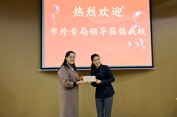郭局长一行详细了解了外籍专家和教师在校的工作及生活情况,对其为yl23455永利官网作出的贡献表示衷心感谢,并对2018年优秀泰国籍教师Bootmun Miss Pinpinat女士进行了表彰。同时对yl23455永利官网目前留学生招生与就业、国外专家引智等情况进行了深入调研,表示昆明市政府历来重视外国人才工作,并指出要继续完善外国人才引进体制机制,对作出突出贡献的外国专家及教师代表给予进一步表彰与奖励,这为新时期yl23455永利官网外专引智管理服务工作指明了方向。