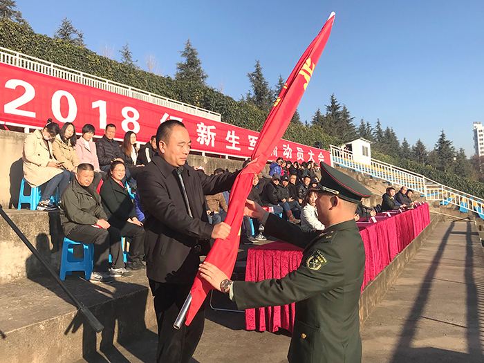 2019年1月7日上午,我校2018级新生军训开训动员大会在田径运动场举行。学校副校长郭华出席大会并作开训动员讲话。学校党办、校办、宣传部、学生处、保卫处、团委、各院系等单位的负责人参加了动员大会。 郭华副校长指出,“军训”作为大学教育的第一课,是学校人才培养的重要环节,是塑造精神气质的有效载体,也是同学们人生旅途中又一个新起点。大学生军事训练的主要任务是训思想、训纪律、训作风、训精神,练技术,练体力,练意志,练品质,这既是学习的过程,也是历练的过程,更是拼搏的过程。并强调,为保证本次军训有序推进,取得实效,学校将严格按照《中华人民共和国国防教育法》、《兵役法》等相关法律法规要求,集中开展为期13天的军事理论课和军事技能训练课学习,内容涉及国防知识、军事理论,队列训练、擒敌战术,战伤救护、内务卫生等训练科目。时间紧,任务重,强度大,挑战多,是对每一位参训同学的全方位考验,军事训练既发挥着锻炼身体素质,磨练意志品格的良好作用,更是同学们今后良好的生活和学习习惯的养成基础。 郭华副校长强调,军训是学习,军训是磨练,军训是收获,军训更是考验。同学们要上好军训这堂课,习得良好的集体协作精神,把小我融入到大我之中,在青春的征途上不断奋斗启航;要虚心求教,勤学苦练;要服从指挥,令行禁止;要团结协作、保障安全。 郭华副校长向军训团授旗并宣布yl23455永利官网2018级新生军事训练开训。