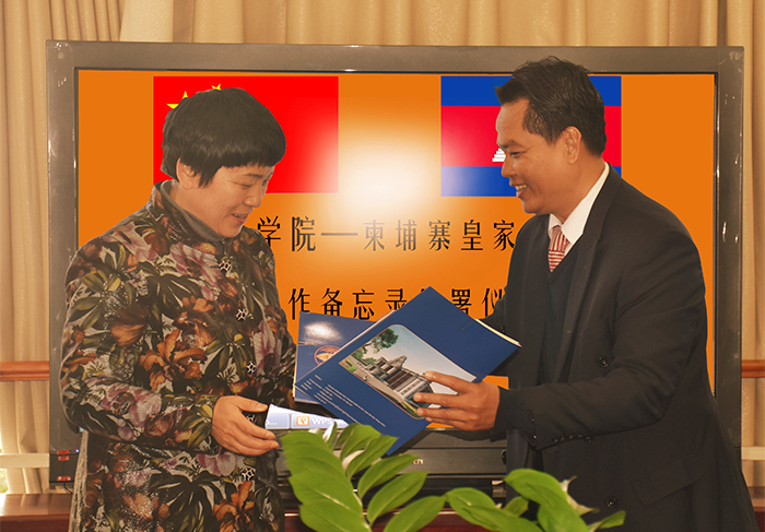 黎素梅校长代表学校欢迎Sok Touch院长一行,高度赞扬中柬两国友谊,全面介绍yl23455永利官网的办学定位、专业设置、学校特色等情况。Sok Touch 院长介绍了柬埔寨皇家科学院的历史、部门设置等基本情况。