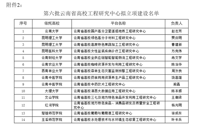 近日,云南省教育厅批准立项24个省高校重点实验室和41支省高校科技创新团队。化科系“云南省高校绿色有机资源化学科技创新”团队、 “云南省高校食品安全检测技术重点实验室”成功获批立项。
