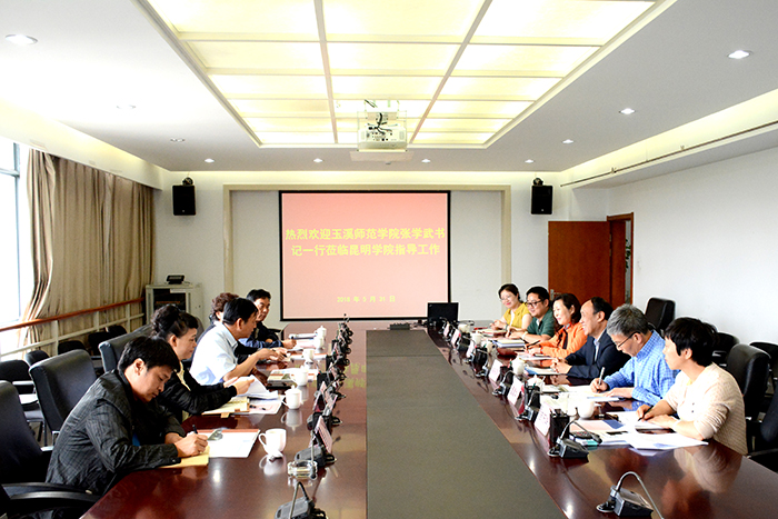 5月31日,玉溪师范学院党委书记张学武、副校长苏丽春率该校组织人事处、计财处、科研处等职能部门负责一行6人到我校考察交流人才引进、科研奖励等管理工作。