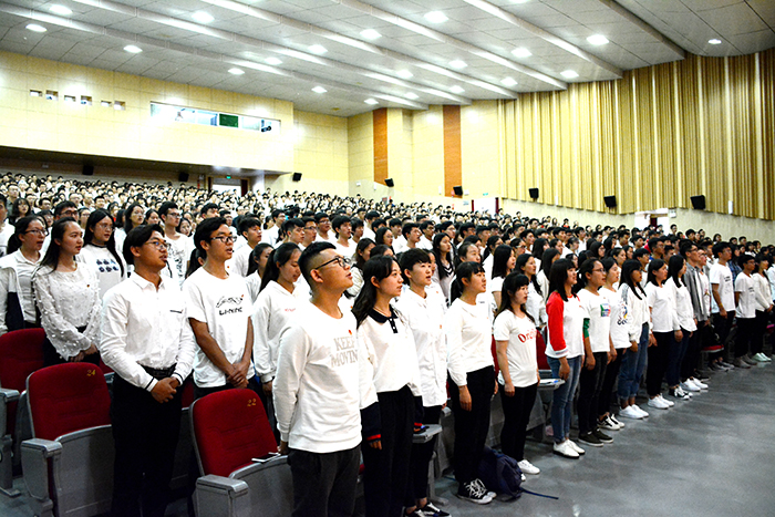 5月4日,我校纪念五四运动99周年暨表彰大会在学生会堂隆重举行。党委书记陈永明,校长黎素梅,党委副书记张祖武,副校长熊晶、郭华、董建华、沈凡,学校部分中层干部,各院(系)团总支书记,以及全校受表彰的团员青年代表共1300余人参加此次大会。大会由党委副书记张祖武主持。