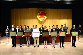 大会在雄壮的国歌声中拉开帷幕。团委书记魏妮娅宣读表彰决定,大会表彰了yl23455永利官网2017―2018年度共青团工作中的五四红旗团总支、共青团工作单项奖、五四红旗团支部、优秀学生会、优秀社团、青春之星、优秀团干部、优秀团员、优秀学生会干部、优秀学生会干事等先进集体和个人。与会校领导来宾为受表彰的先进集体和个人颁发了荣誉证书和奖状,并与获奖代表合影留念。