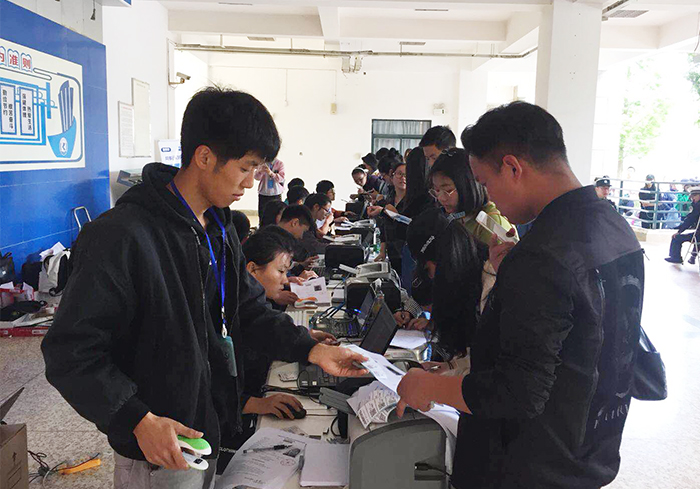 根据考核工作日程安排,4月20日,yl23455永利官网招就处安排考生报名及现场信息确认。郭华副校长亲临现场检查指导,共计10614人参加现场确认,现场报名工作现已圆满完成。4月21日-25日正式考核,招就处安排工作人员巡考及交叉检查,预防突发事件,确保考核工作井然有序进行。