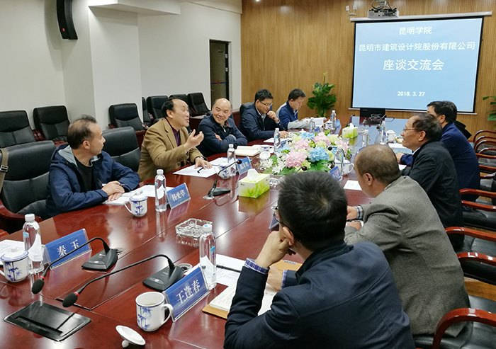 3月27日,学校党委书记陈永明率城乡建设与工程管理学院一行六人,到昆明市建筑设计研究院股份有限公司考察交流,探寻校企合作融合发展之路。受到院方杨宝璋董事长、赵宇才副董事长、俞建华副总经理等的热情接待和欢迎。