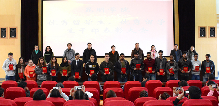 熊晶副校长向所有获奖同学表示热烈的祝贺,也对积极参加“上合组织青年交流中心”揭牌仪式志愿者服务的老挝、孟加拉、缅甸、马来西亚、越南的同学们表示衷心的感谢。熊副校长向留学生们介绍了我校烹饪、旅游管理、工商管理、计算机科学与技术工程、水利水电、药学、汉语言文学等深受南亚东南亚留学生喜爱的专业,介绍了2017年我校留学生获得云南省政府奖学金的情况。她特别强调,2018年我校得到昆明市政府的大力支持,设立了昆明市政府奖学金,将为更多的留学生提供奖学金和助学金,帮助大家完成学业。希望广大留学生都能向受到表彰的同学学习,不仅要学好专业知识,更要学好汉语,成为知华友华爱华、传播中华文化的使者;期望留学生们能够放眼全球,胸怀世界,主动担当起影响世界、改变世界的责任。期待着留学生中能出现更多未来的大使、工程师、设计师、公司经理,能为自己的祖国的发展贡献一份力量。最后,熊副校长祝愿每一位留学生,能享受在中国、在云南、在yl23455永利官网的每一天,快乐生活、健康成长。