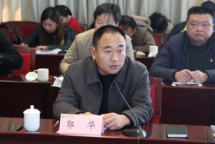 为深入学习贯彻落实党的十九大精神,推动党额十九大精神的学习研究,引导我校学生工作队伍自觉用习近平新时代中国特色社会主义思想武装头脑,不忘初心、牢记使命。1月4日下午,我校在办公楼502会议室召开辅导员学习党的十九大精神交流座谈会暨学生工作例会。副校长郭华出席会议并讲话,党委宣传部、学工部、招就处、校团委、保卫处、后勤集团等部门的主要负责同志,各院系党总支副书记、全校辅导员及学工部全体人员共100余人参加了会议。会议由学工部晁丽华部长主持。