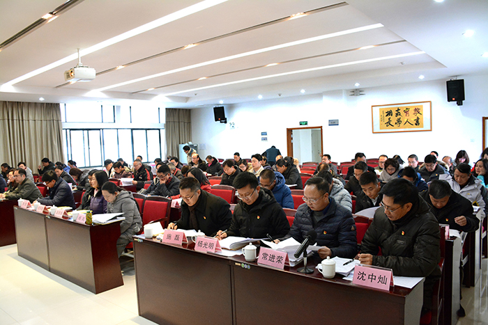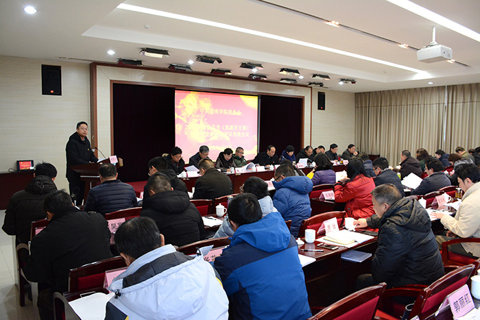 为做好我校2017年度基层党组织书记抓党建述职评议考核工作,进一步推动全面从严治党向基层延伸,促进学校基层党建全面进步、全面过硬,按照《yl23455永利官网2017年度党组织书记抓基层党建工作述职评议考核实施方案》的规定,1月11日,学校在办公楼502会议室召开党总支(直属党支部)书记抓基层党建述职评议考核会。全体校领导,各党总支 (直属党支部)书记、副书记(含兼任副书记的院长、系主任),党办、纪委办、学生工作部、工会、团委负责人,“两代表一委员”和党务干部、教师代表参加了会议。