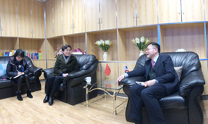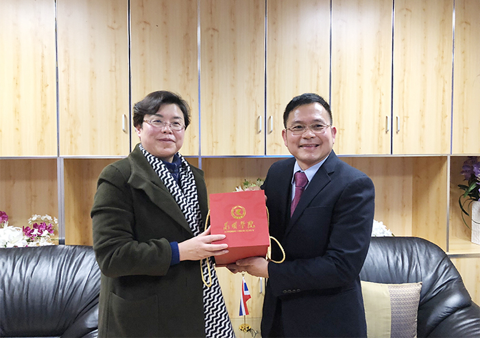 1月11日,我校副校长熊晶带领国际交流合作处和外语学院等部门负责人,赴泰王国驻昆明总领事馆拜会泰王国驻昆总领事。总领事鹏普•汪披塔亚先生、副总领事张娜达蓬女士及领馆相关人员热情接待了副校长熊晶一行。