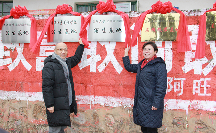 我校美术与艺术学院在校领导的支持下,积极与省外合作院校广泛联系,得到了清华大学美术学院、深圳大学艺术设计学院、武汉纺织大学服装学院、四川美院、中南大学美术学院的支持,五所高校联合在关中村挂牌“关中村写生基地”,共同参与和支持学校扶贫工作。“关中村写生基地”的建立,将为更多大中专院校美术系学生及美术创作和美术爱好者抒写人生,提供广阔的发展空间,搭建施展才华的艺术舞台,也增加了建档立卡户增收渠道。