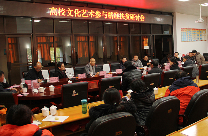 当天下午,我校副校长熊晶、东川区人民政府副区长颜静,受邀的深圳大学艺术设计学院院长吴洪教授、四川美术学院科研处处长苏永刚教授、中南大学服装与工程学院院长周少华教授、武汉纺织大学服装学院院长熊兆飞、著名探险家金飞豹、昆明市扶贫开发办公室副主任程幼昆,以及东川区文化体育广播电视局、东川区旅游和商务局、东川区扶贫开发办公室等部门领导,学校扶贫办、美术与艺术学院、旅游学院相关部门人员、学校驻关中村扶贫工作队、关中村干部一同召开了“高校文化艺术参与精准扶贫”研讨会。