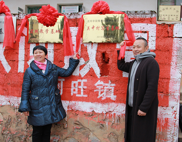 1月9日至10日,我校校长黎素梅、副校长熊晶,学校扶贫办、美术与艺术学院、旅游学院等部门负责人和受邀参与此次扶贫的省外高校专家教授、著名探险家金飞豹先生一行25人,赴学校市级扶贫点东川区阿旺镇关中村,举行 “关中村写生基地”揭牌仪式,并在区政府召开了高校文化艺术参与精准扶贫研讨会。
