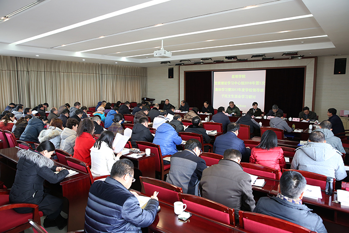 1月11日,学校党委理论学习中心组举行2018年第1次集体学习暨2017年度领导班子民主生活会学习研讨,进一步深入研学党的十九大精神、习近平新时代中国特色社会主义思想和《习近平谈治国理政》第二卷,传达学习习近平总书记1月5日在新进中央委员会的委员、候补委员和省部级主要领导干部学习贯彻习近平新时代中国特色社会主义思想和党的十九大精神研讨班开班式上的重要讲话精神,传达学习“加强和改进高校思想政治工作座谈会”精神。强调,坚持用习近平新时代中国特色社会主义思想武装头脑、指导实践、推动工作,把立德树人根本任务抓在手上扛在肩上,以永不懈怠的精神状态和一往无前的奋斗姿态,拥抱新时代、践行新思想、实现新作为。 学校党委书记陈永明主持会议并作总结讲话,学校党委委员、非中共党员校领导、副校级领导参加集体学习,学校各单位党、政主要负责人列席学习会。