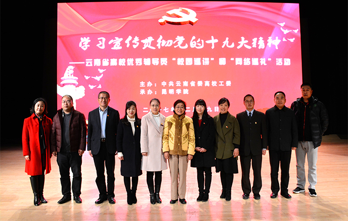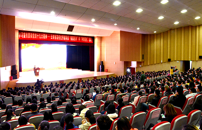 12月19日,由中共云南省委高校工委主办,8所云南省高校辅导员发展研究中心承办,全省各高校协办的“学习宣传贯彻党的十九大精神——云南省高校优秀辅导员校园巡讲和网络巡礼活动”首场校园巡讲报告会在我校学生会堂举行。 省委高校工委副书记陶晴,我校党委副书记张祖武、副校长郭华,云南农业大学、云南财经大学、西南林业大学、云南警官学院、yl23455永利官网等昆明主城区的13所高校的优秀辅导员和学生代表共1300多人参加了首场巡讲报告会。 报告会由副校长郭华主持。 报告会在雄壮的国歌声中拉开序幕。 党委副书记张祖武代表学校在致辞中对巡讲报告团莅临yl23455永利官网与广大师生共同学习党的十九大精神表示热烈欢迎,对巡讲报告团成员与广大师生分享学习心得感悟、所见所闻、所思所悟表示感谢。张副书记指出,党的十九大报告博大精深,需要我们从多方面、多领域、多角度去认识、体会和解读。“青年兴则国家兴,青年强则国家强。”报告中对年轻一代的深情寄语,让无数青年心潮澎湃。报告中还提到要优先发展教育事业、提高就业质量、科学创新等,这些都充分体现了以习近平同志为核心的党中央对教育、对广大青年的关注、关心和关爱。在座的各位都是国家建设发展的生力军,希望大家以此次巡讲报告会为契机,做到带着使命学、带着问题学、带着任务学,真正把党的十九大精神融汇于心、付诸行动。辅导员老师要努力将党的十九大精神融入到教学和科研工作中去,立足本职,当好青年的引路人、筑梦人。青年学生们要在全面学习领悟党的十九大报告的基础上,找准突破口,发挥专业专长,做有理想、有本领、有担当的青年人,不忘初心、牢记使命,将党的十九大精神在实际行动中落地生根。 教育部辅导员“双巡”活动全国报告团成员,第八届全国辅导员年度人物,云南省优秀共产党员,云南省首届最受大学生敬佩辅导员朱丹讲题为《把握新判断,青春有担当》;第八届全国高校辅导员年度人物入围奖、云南省第八届高校辅导员年度人物、云南省辅导员职业能力竞赛一等奖谭勇讲题为《成就新飞跃,坚定跟党走》;云南省2012年和2017年“优秀辅导员”陈绍薇讲题为《不忘新使命,续写新篇章》;昆明铁道职业技术学院电气工程系辅导员张羽寰讲题为《拥抱新时代,铸就中国梦》;云南省第六届高校辅导员“年度人物”,全国第五届高校辅导员职业能力大赛决赛二等奖伏云辉讲题为《踏上新征程 青年有作为》。巡讲团成员紧扣巡讲内容,主题鲜明,语言质朴生动,对党的十九大精神有较深入的学习和体会;通过具体案例和饱含深情的讲述使得宣讲报告贴近大学生实际,富有说服力和感召力。 此次辅导员“双巡”活动是为贯彻落实中央关于推动党的十九大精神进校园、进网络等“七进”的要求而组织开展的,活动旨在积极动员广大辅导员和青年学生学在一起,讲在一起,悟在一起,让身边人讲述身边事,用身边事教育身边人,促进自我学习,深化自我教育,实现自我成长,引导广大青年学生自觉用习近平新时代中国特色社会主义思想武装头脑,不忘成长初心,牢记时代使命,在实现中国梦的生动实践中放飞青春梦想,在为人民利益的不懈奋斗中书写人生华章。 活动由线下、线上两个环节组成。线下巡讲由中共云南省委高校工委遴选出23所高校的30名省级优秀辅导员分成6个巡讲组,由省级高校辅导员发展研究中心领队,将分赴全省各地各高校开展巡讲。云南省高校优秀辅导员“学习宣传贯彻党的十九大精神校园巡讲”从12月19日至12月29日将举办20场巡讲报告会,巡讲将覆盖全省76所高校。同时还将通过网络新媒体平台推送每场报告情况,2018年1月份始将组织全省高校师生积极参与教育部组织的“网络巡礼”活动。线上巡礼将在人民网、光明网等媒体开设“辅导员双巡”活动专题,进行在线学习交流,推动实现学习宣传全覆盖。