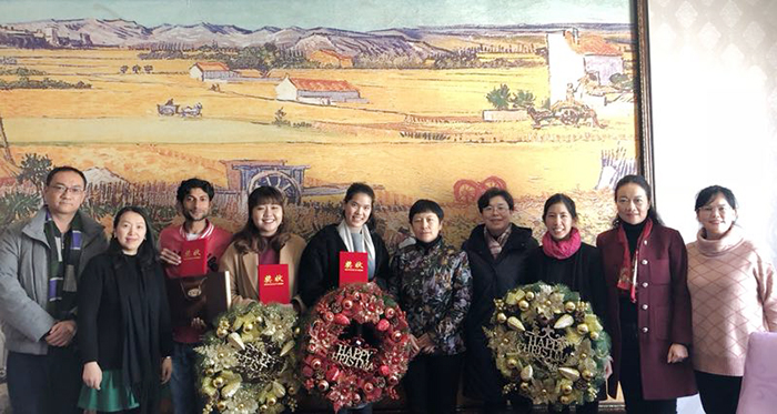 圣诞节是西方最重要的传统节日之一,对西方人来说圣诞节就像中国的春节一样重要。12月 25日,校长黎素梅、副校长熊晶代表学校亲切慰问了在我校任教的6位外籍教师,国际交流合作处副处长陈静及国际处相关人员参加了慰问活动。