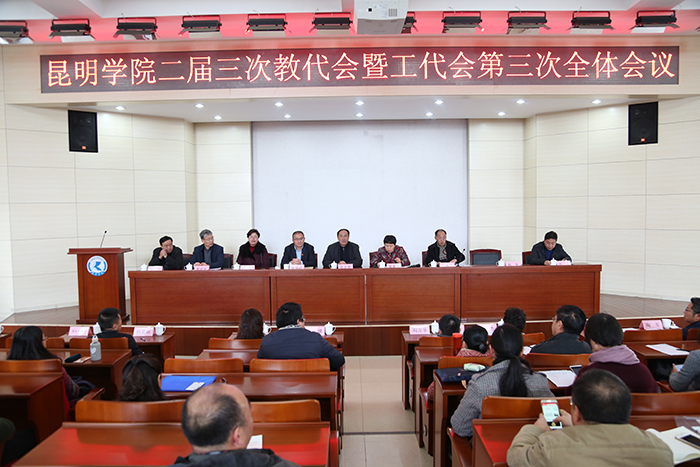 2017年12月25日下午,yl23455永利官网二届三次教代会暨工代会第三次会议在学校办公楼三楼D区报告厅隆重举行。yl23455永利官网第二届教代会暨工代会正式代表124人参加会议,各分工会主席和机关工会小组长列席会议。会议由黎素梅校长主持。