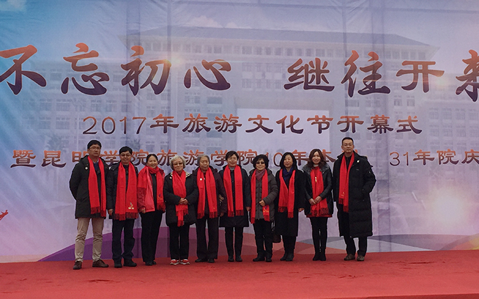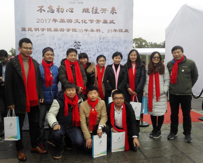 11月24日,旅游学院在我校聂耳广场举办了主题为“不忘初心、继往开来——2017旅游文化节暨yl23455永利官网旅游学院10年本科、31年院庆”的开幕庆典活动。 出席开幕式的有我校副校长熊晶,历届老领导,校企合作专场招聘会40余家代表,历届校友400余名、在校学子500余名共襄盛举。本次活动由2000级校友现任云南交通之声主播罗西主持。 开幕式上,熊晶副校长代表学校致辞,并向各位来宾介绍了yl23455永利官网近几年的发展和旅游学院的情况。院长田芙蓉代表旅游学院全体师生欢迎校友们回家并表达了成立校友会的愿望,她相信在校友们的支持下,旅游学院在未来的征程中会取得更大的发展。 1995级学生代表朱江代表95级的校友向学院赠送礼物,感恩母校的教育之情。2003级的毕业生班先海、雷翔等校友表演了花式调酒。校友情、师生情感动着每一位在场的嘉宾。