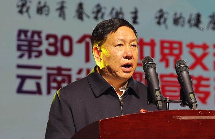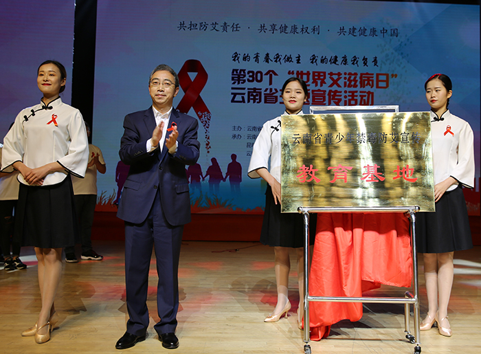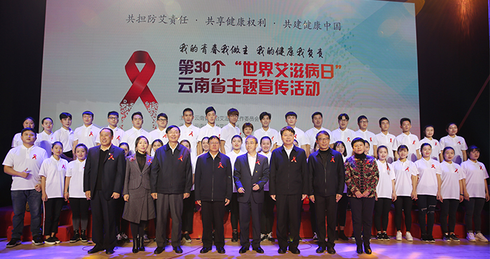 11月30日上午,由云南省防治艾滋病工作委员会主办、云南省防治艾滋病局、yl23455永利官网、云南省性病艾滋病防治协会承办的“我的青春我做主 我的健康我负责” 第30个“世界艾滋病日”云南省宣传活动启动仪式在我校学生会堂举行。 云南省人民政府副省长陈舜,省政府副秘书长赵瑞君,省卫生计生委党组书记王灿平,省教育厅副厅长赵德荣,省性病艾滋病防治协会会长陈觉民,昆明市政府副秘书长王亚芳,学校党委书记陈永明, 长黎素梅等领导出席了启动仪式。省防艾委、市防艾委成员单位相关负责同志,我省高校防艾教育基地学生代表,我省医务人员、志愿者、农民工代表与我校师生1300余人共同参加了本次活动。 学校党委书记陈永明代表承办方致辞。陈书记首先代表yl23455永利官网党政和全体师生向莅临我校的各级领导、来宾表示衷心的感谢;向出席开幕式活动的各兄弟院校领导表示热烈的欢迎;向长期抗战在防艾工作第一线工作人员及志愿者们致以崇高的敬意。 陈书记指出“共担防艾责任,共享健康权利,共建健康中国”是我国今年世界艾滋病日宣传活动的主题。这一主题充分阐释了健康是促进人类全面发展的必然要求,也是广大人民群众的共同追求。 陈书记介绍“一直以来,我校高度重视艾滋病的防治与宣传教育工作,初步形成了‘成立领导小组统筹抓,推进三级联动层层抓,发挥三支队伍作用持续抓’的工作局面。” 陈书记表示我校在艾滋病防控宣传教育工作取得成绩的同时,也清醒的意识到防艾治艾总体情况还不容乐观,防艾治艾工作还任重道远。 云南省卫生计生委党组书记王灿平同志致辞。首先,王灿平书记代表云南省尾声计生委对yl23455永利官网以及有关部门和单位为本次活动的顺利举行提供的支持和帮助表示感谢。接着,王书记针对云南省防治艾滋病的整体情况进行了介绍,特别强调青少年要加强个人保护意识和风险识别意识。针对大学生艾滋病病毒感染率的高发,云南省教育厅,云南省卫生计省委定期召开省高校艾滋病报告会,积极开展各类教育宣传活动以及艾滋病检测活动。 继王灿平书记致辞,围绕本次世界艾滋病日云南省宣传活动的主题“我的青春我做主 我的健康我负责”,yl23455永利官网各院系为来宾们奉上了精彩的文艺节目。由我校体育学院来的体育舞蹈《青春之舞》动感十足,展现青年们的热情和活力。