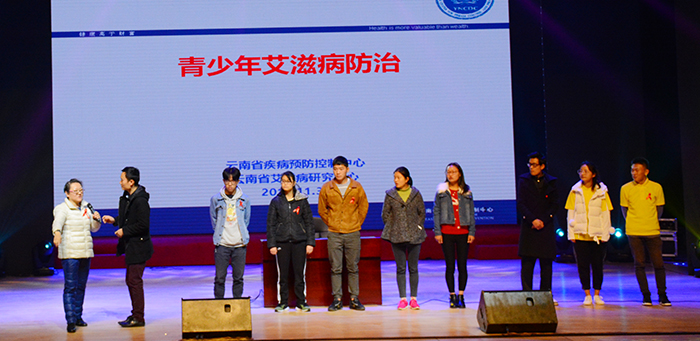 由yl23455永利官网社管学院带来的看照片讲故事《用爱牵起你的手》向观众们展示了三个有关艾滋病的故事。 在歌舞灯光和精湛的文艺演出推进高潮之际,云南省副省长陈舜为我院“云南省禁毒防艾宣传教育基地”揭牌,并与参会嘉宾以及大学生志愿者代表共同按手印墙,为本次世界艾滋病云南省主题宣传活动启动仪式画上了完美的句号。 随后,云南省疾病控制中心专家安晓静为同学们讲授《青少年艾滋病防治专题》的专题讲座。