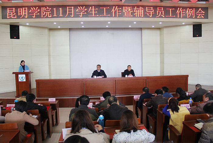 11月30日,我校在办公楼D区报告厅召开11月份学生工作暨辅导员工作例会。学校党委副书记张祖武、副校长郭华出席会议,学生处、保卫处、招就处等职能部门领导,各院系党总支副书记、全校辅导员及学生处全体人员共100余人参加了会议。会议由张祖武副书记主持。 会上,保卫处通报了近期校园安全情况,就近期即将开展的学生宿舍违规电器专项整治工作作了安排布置;学生处对开展学习宣传贯彻党的十九大精神——千名高校优秀辅导员校园巡讲和网络巡礼活动的开展、2017-2018学年“优良学风班”创建、2017年辅导员班主任考核、家庭经济困难学生助困等工作作了安排布置,对2017级新生入学教育知识竞赛情况、学生医疗保险学平险参保核定等情况作了通报。 郭华副校长在会上提出三点工作要求:一是要认真学习贯彻党的十九大精神。各院系要根据省委高校工委和学校党委的要求,结合实际,通过主题班会等形式广泛开展学习宣传党的十九大精神的活动。辅导员班主任对党的十九大精神要先学一步,学深一步,做好学生的思想引领工作。二是要加强对学生的日常管理工作。重点要做好学生的安全教育工作,加强违规电器的清理和违纪学生的教育管理。三是要进一步加强学风建设。良好的学风作为人才培养的根本保障,要持之以恒抓学风,在校园中营造良好学习氛围,为学生的成长成才服务。 最后,张祖武副书记作总结讲话强调指出:学工队伍要继续加强学习宣传贯彻党的十九大精神,要在“学懂、弄通、做实”上下苦功夫,做到“入脑、入心、入行”,用党的十九大精神武装头脑、指导实践、推动工作。辅导员要继续履好职、尽好责,学校党委对辅导员队伍建设高度重视,辅导员自身要加强学习,以高度负责的工作态度做好本职工作。