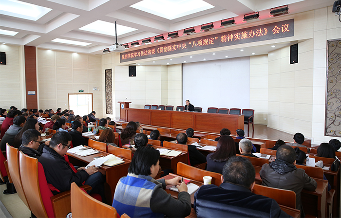 2017年12月6日,我校召开中层以上干部大会,及时传达学习省委贯彻落实中央八项规定精神实施办法,对贯彻落实工作进行安排部署。