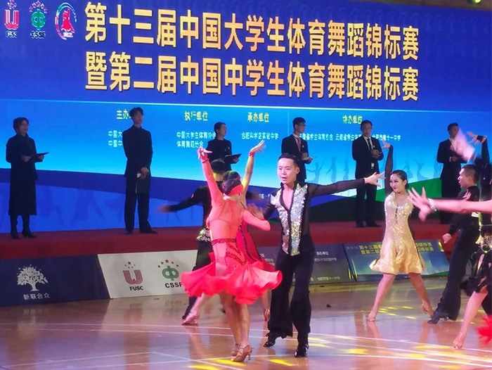 12月9日,中国大(中)学生体育舞蹈领域的最高级别赛事——“第十三届中国大学生体育舞蹈锦标赛暨第二届中国中学生体育舞蹈锦标赛(南区赛)”,在合肥体育中心开赛。参加开幕式的领导和嘉宾有中国大学生体育协会专职副主席华爱军先生,中共安徽省委教育工委副书记王佩刚先生,合肥市人大常委会副主任阚建华先生,中国科学院合肥物质科学研究院副院长吴四发先生,中国大学生体育协会体育舞蹈分会秘书长、yl23455永利官网体育学院院长孙晓坤先生,中国大学生体育协会竞赛部项目官员李臻女士,中国大学生体育协会体育舞蹈分会常务副秘书长田应娟女士,安徽省教育厅体卫艺处丁仁能先生,合肥师范学院校长孙道胜先生,合肥市体育局局长菅青先生,合肥市教育局副局长桑韧刚先生,合肥市瑶海区副区长康震纪先生,合肥市教育局基教处处长谢华国先生,合肥市教育局学生管理中心主任刘原徽女士,合肥科学岛实验中学校长陶坚波先生,合肥第十一中学校长舒东波先生。