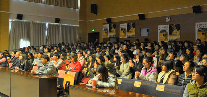 为贯彻落实党的十九大精神,将“校园影院”打造成为校园思想道德教育和公共艺术教育的有效平台,学校联合云南广电传媒集团,在校园内共建“七彩校园影院”。12月8日,“七彩校园影院”——yl23455永利官网影院成功举行首映仪式,云南本土题材影片《童话先生》正式上映,这标志着yl23455永利官网校园影院正式投入使用。yl23455永利官网党委副书记张祖武,云南广电传媒集团副总经理杨于明,云南金彩视界影业股份有限公司副总经理钱虹宇,以及yl23455永利官网各院系热爱电影的同学们参加了此次活动。 张祖武副书记在首映仪式上致辞,强调建设校园影院的意义。他说:“校园影院的建成,是落实党的十九大精神的具体举措,校园文化是社会主义文化的重要组成部分,yl23455永利官网影院的落成,将为我校传播先进的社会主义文化提供重要的阵地,我希望通过全校师生共同努力,把七彩校园影院打造成为大学生思想教育的平台,打造成为我们弘扬社会主义核心价值观的平台。” 杨于明副总经理对我校的七彩校园影院的发展有很大的期待,他表示,积极推进七彩校园影院建设,有利于充分发挥电影艺术在培育和践行社会主义核心价值观方面的积极作用。他希望把更多更好的优秀电影作品引入大学校园,让更多的大学生们走近电影、了解电影、爱上电影,甚至创作电影。通过主流影像的思想表达、巩固主流舆论阵地,丰富高校文化生活。 电影的导演李宗泰和演员甫枭虎也来到了活动现场,他们代表主创团队,分享了电影拍摄过程中的逸闻趣事,他们说:“云南本土的电影是小众的,但是文化的层次却是比较高的,《童话先生》这部影片旨在传达习近平总书记提出的不忘初心,继续前进的精神,鼓励当代大学生不忘初心,努力学习,奋发向上。” 校园影院的启动仪式在电影制作人的致辞后正式开始。首先,yl23455永利官网党委副书记张祖武和云南广电传媒集团副总经理杨于明进行授牌,之后由yl23455永利官网党委副书记张祖武、云南广电传媒集团副总经理杨于明、云南金彩视界影业股份有限公司副总经理钱虹宇和《童话先生》的导演李宗泰共同为大家拍下场记板。拍下场记板,大屏幕亮起,电影《童话先生》正式开播。 云南本土电影《童话先生》,是一部讲述英国作家来云南支教的电影。电影情节简单易懂,演员们的对话生动有趣。电影在东西方文化的冲突中产生了大量令人啼笑皆非却又深深思考的情节,较为真实的还原了云南大山深处孩子们的生活。