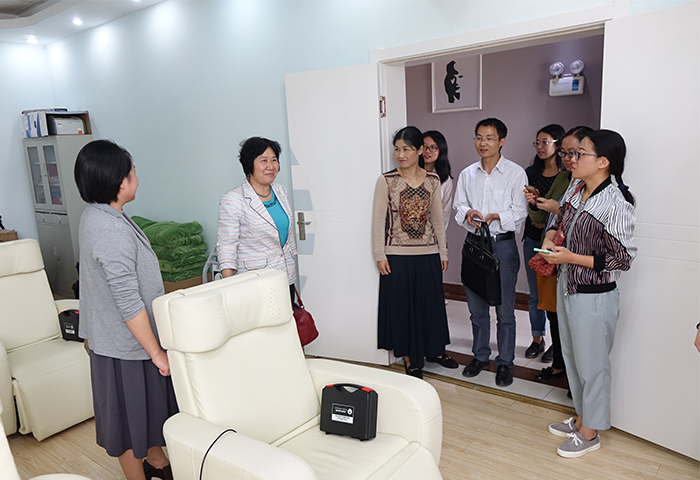王荔主任向来宾介绍了中心的人员配备、四级机制、“课程-活动-服务”工作模式、危机干预、工作保障、特色亮点及工作成果七个方面的情况。