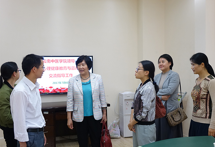 7月6日,云南中医学院党委纪委书记李媛芬率人文学院和学生处相关老师到我校心理健康教育与咨询中心(以下简称中心)交流指导工作,心理健康教育与咨询中心主任王荔、副主任徐惠萍等接待了李书记一行人。