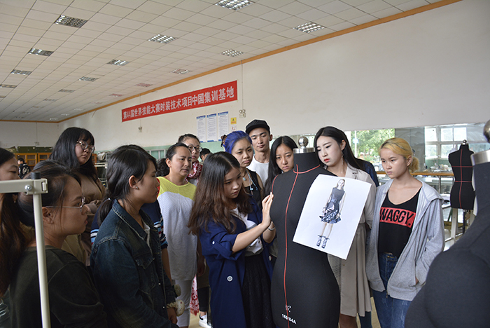 本次模拟赛为教学赛,启动仪式后,将代表中国参加第44届世界技能大赛时装技术项目的两位选手开始了模拟赛。同时,该赛项中国集训基地的负责人、北京工贸技师学院杨郁老师向参训的我院学生对世界技能大赛时装技术项目的比赛内容和规程进行了详细的介绍,特别强调了专业的设计及制作要求。比赛分为五个单元,分别是服装系列设计、立体造型制作、服装设计直板、服装设计制作和服装装饰,合计18小时,将在7月13日至15日三天内严格按照比赛程序完成。