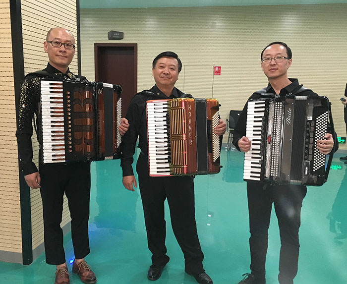 在18日举行的中国第五届聂耳音乐(合唱)周“聂耳颂歌——2017昆明聂耳音乐节开幕式大型交响音乐会”上,yl23455永利官网室内乐团的音乐学院廖一瑄副教授、马宏援老师以及学前与特殊教育学院苏剑老师,与昆明交响乐团及中国国家交响乐团的两位歌唱家合作演奏夏良先生改编的《滇池圆舞曲》,这是手风琴首次与交响乐团共同奏响云南大剧院,而手风琴这件乐器的加入也赋予这首圆舞曲新的生命。