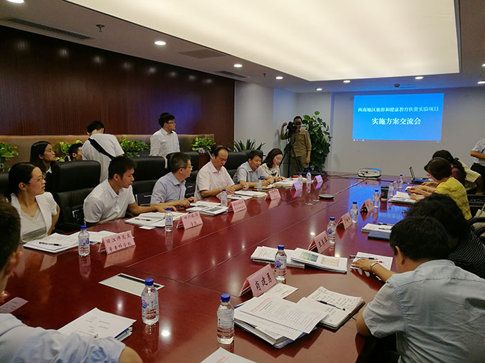 旅游和健康教育扶贫实验项目的院校,参加了在北京教育部学校规划建设发展中心召开项目实施方案最后的评审答辩和交流会。中心主任陈锋出席交流会,产教融合发展研究院常务副院长单铁军主持会议。我校旅游学院田芙蓉院长(项目副组长)作为项目代表在会上进行了交流发言和答辩,得到了与会专家的一致好评。