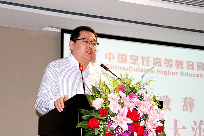 世界中餐联合会副会长邢颖在致辞中指出,面对服务经济时代的到来、面对互联网时代的到来、面对消费需求的升级和供给侧结构性改革的升华,特别是服务于国家的三大战略,我们中国餐饮产业发展正处在一个新的时期,面对着挑战和机遇,我们不能自我陶醉于全国餐饮业实现收入三万多亿的现状,市场的变化、行业的需求、企业的实践,迫切要求烹饪餐饮理论的支持。迫切的要求烹饪餐饮教育人才培养、迫切要求回答烹饪餐饮实践中出现的一些列问题,进行系统的梳理归纳和提升,得到理论的指导。