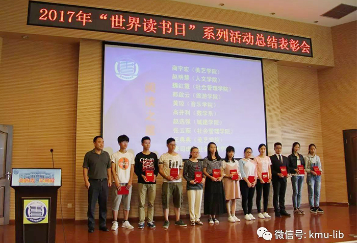 6月9日,yl23455永利官网2017年“世界读书日”系列活动总结表彰会在图书馆报告厅举行。学校副校长郭华,图书馆、学生处、校团委及各院系领导,阅读之星、各项活动奖项获得者、图书馆部分老师及学生代表参加了表彰会。