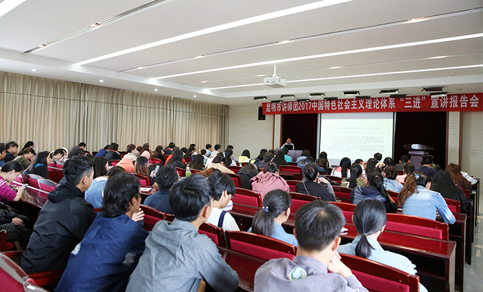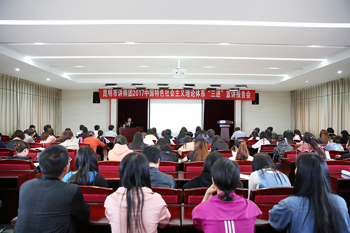 5月25日,由昆明市委宣传部、yl23455永利官网共同举办的“昆明市讲师团2017年中国特色社会主义理论体系‘三进’宣讲报告会”在我校举行。报告指出,中国特色社会主义是由道路、理论体系、制度构成的,是党和人民长期奋斗、创造、积累的根本成就。