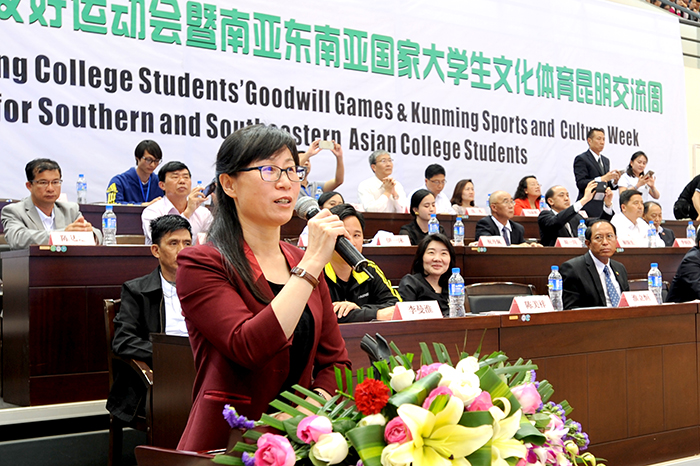 昆明市副市长王建颖在会上宣布首届2017澜湄大学生友好运动会暨第三届南亚东南亚国家大学生文化体育昆明交流周圆满闭幕。