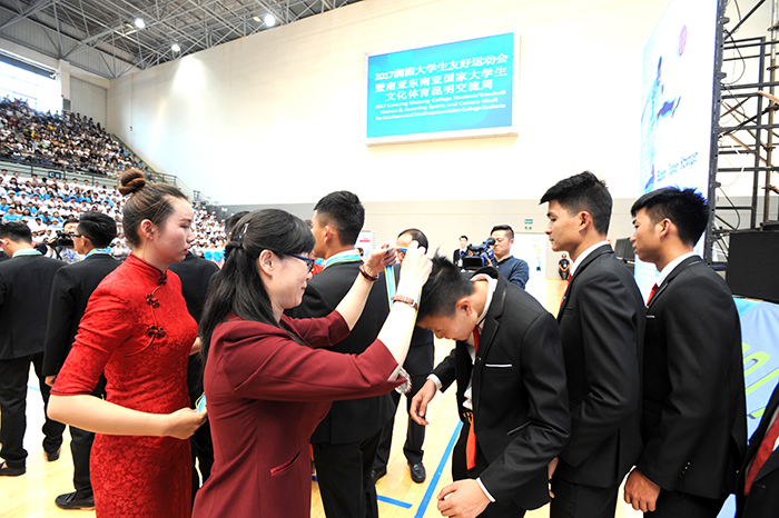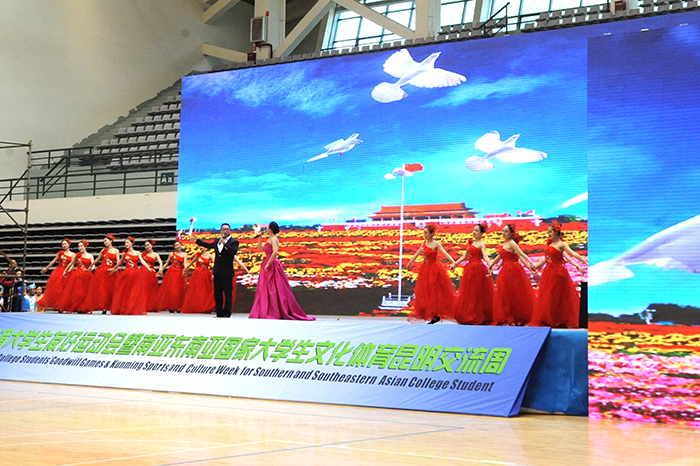 5月29日,2017澜湄大学生友好运动会暨第三届南亚东南亚国家大学生文化体育昆明交流周闭幕式在我校体育场馆中心综合馆隆重举行。