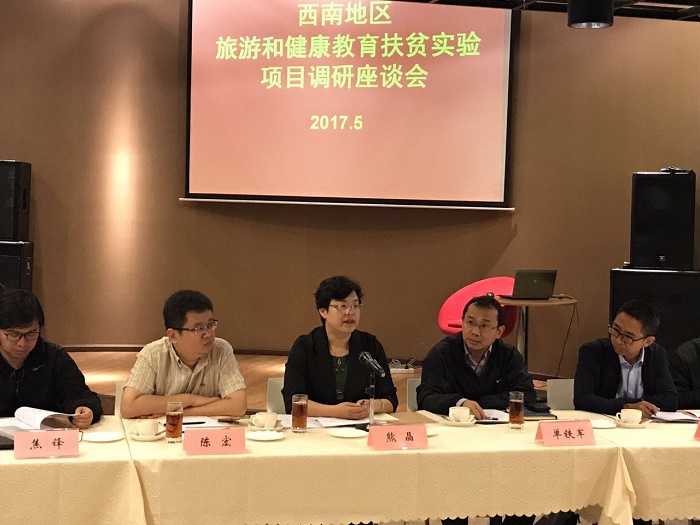副校长熊晶代表学校致欢迎辞,并介绍了yl23455永利官网在人才培养、学科建设、科学研究、社会服务等方面的基本情况。单铁军副院长介绍了教育部学校规划建设发展中心的基本情况,同时详细介绍了“西南地区旅游和健康教育扶贫实验项目”的具体情况、申报要求、申报程序和建设要求等。