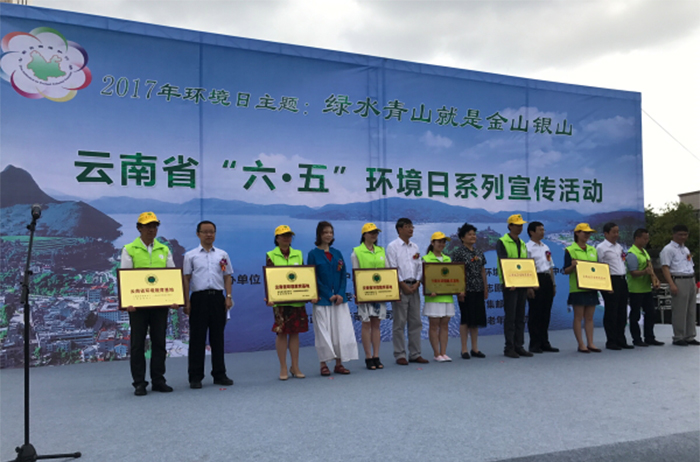 启动仪式上省九湖督导组组长晏友琼和省环保厅、省邮政集团领导为省级命名的绿色学校、绿色社区、环境教育基地授牌,为环保小卫士颁奖。我校滇池流域生态文化博物馆获“第六批云南省环境教育基地”称号,钱春萍主任代表博物馆接牌,并获先进个人表彰。