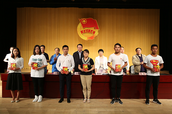 团委书记魏妮娅宣读表彰决定。表彰了yl23455永利官网工作最优秀奖、优秀奖、贡献奖、优秀学生会、优秀社团,优秀团支书,优秀团干部、优秀团员、优秀学生会干部、优秀学生会干事等先进集体和个人。与会校领导来宾为受表彰的先进集体和个人颁发了荣誉证书和奖状,并与获奖代表合影留念。