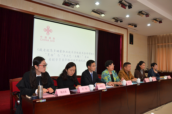 5月15日,我校举办yl23455永利官网联合云南省建设投资控股集团有限公司承接中国商务部“援老挝乌多姆赛职业技术学校技术合作项目”第二期培训班开班仪式。副校长熊晶、国际交流合作处副处长陈静、美术与艺术设计学院党总支书记罗进和副书记李正红、旅游学院副院长杨韫以及云南省建设投资控股集团有限公司国际工程部工程师邓伟升(援老挝乌多姆赛职业技术学校技术合作项目经理)、昆明市人力资源中心职业能力建设处主任许昀和副主任钱方英等出席了开班仪式。