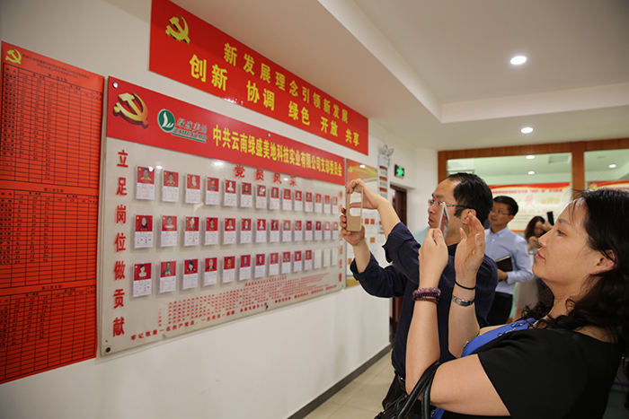 陈世波书记强调,在学校扎实推进“两学一做”学习教育常态化制度化和全面深入创建一流党建活动之际,组织党总支、直属党支部书记到云南绿盛美地科技实业有限公司党支部参观学习党建工作,旨在跳出高校看党建,启迪心智、拓宽视野,促进交流、找准异同,学习借鉴先进经验和有效工作方法,进一步提高学校党务干部的创新工作能力和水平,推动学校基层党建再创新再发展,为创建培育一批立得起、叫得响、具有我校特色的党建工作品牌带来新思想、注入新动力。