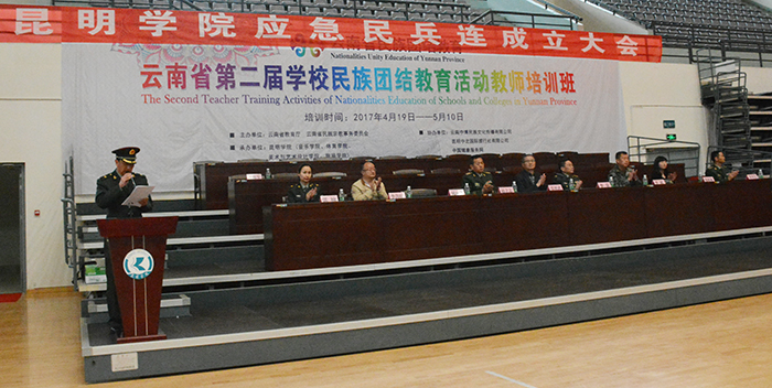 4月21日,我校在场馆中心综合馆召开民兵连成立大会,学校党委副书记张祖武、边防武警部队士官学校副校长李荣、边防武警部队士官学校训练部副部长赵立志、官渡区人民武装部部长李斌、阿拉乡武装部部长张楠等出席会议。