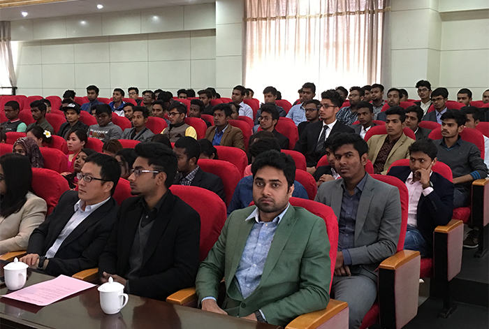 Dr.Ganguli也作了热情洋溢的发言,高度赞扬了yl23455永利官网的领导及老师们给予孟加拉留学生的温暖和照顾,激励孟加拉留学生珍惜优美的学校环境和来之不易的学习机会,不缺席任何一次课堂学习和社会实践活动,时刻牢记自己对家庭、国家的责任和使命,成为以后学弟学妹们的良好榜样。