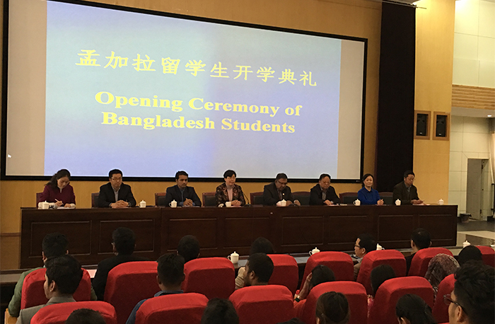 典礼上,我校熊副校长代表学校对参加开学典礼的各位来宾表示热烈的欢迎和诚挚的谢意,对前来我校学习工商管理专业、软件工程专业和计算机科学与技术工程专业的79名孟加拉留学生表示真诚的祝贺,并对孟加拉留学生给予殷切的期望,希望同学们一定要遵守中国的法律法规和yl23455永利官网的校纪校规,尽快适应新的学习环境,养成良好的学习习惯和时间观念,勤奋学习,按时完成学业。希望同学们注重对中国文化的了解和汉语的学习,努力提升自己的社会竞争力,学有所成后能报效自己的国家,成为孟中友谊的桥梁。